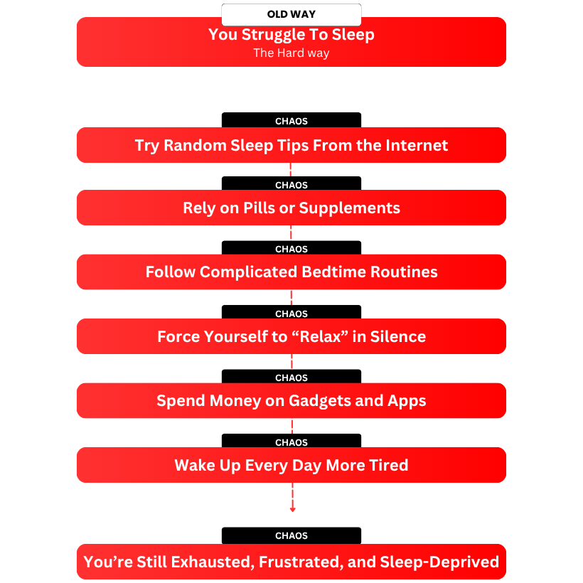 👉 This is the old way — a frustrating, exhausting road that leads nowhere, where peaceful sleep feels like something other people have… not you.