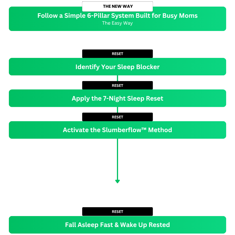 A: The 7-Night Sleep Reset is perfect for busy moms who struggle to fall asleep or stay asleep, especially those whose minds race at bedtime