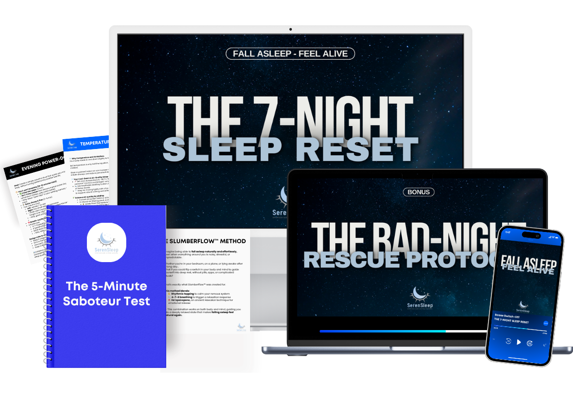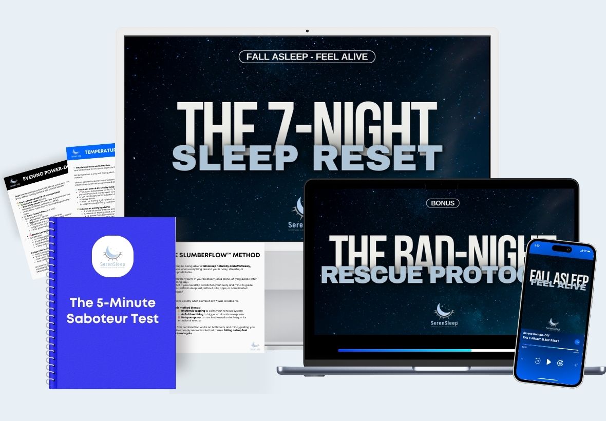It’s a science-based reset that guides you night by night, helping your mind and body relearn how to fall asleep naturally.